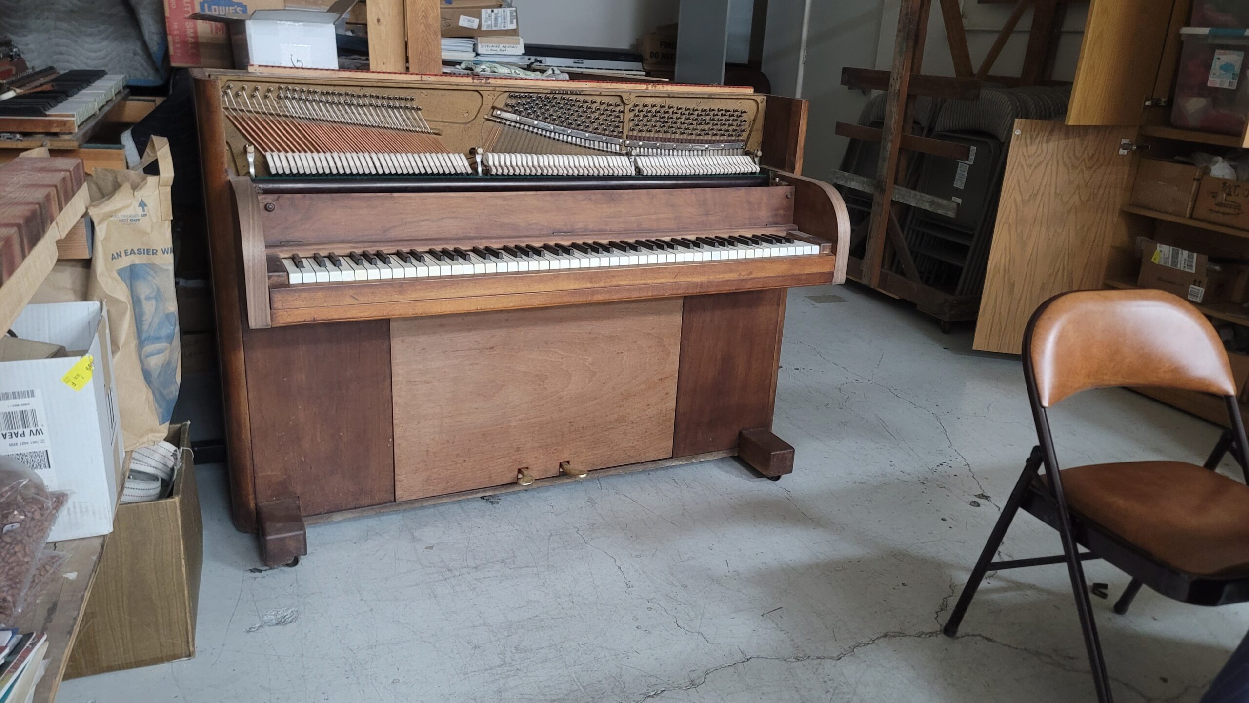 Another legacy project was a Steinway Victory Vertical, once coated in army drab. Its owner—a war hero—stripped the paint after the war as a statement that the piano would never need its war paint again. I could’ve repainted it, but I didn’t. That sentiment, that story, is built into the wood now.